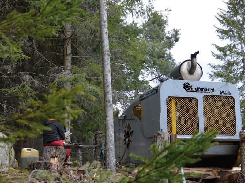 - Smart Yarder - Information is everything. The "Smart Yarder" function, in addition to keeping you informed about everything your machine is doing, allows you to interact remotely via your smartphone, tablet, or PC. Smart Yarder precisely replicates everything the Greifenberg infotainment system communicates through the machine’s touchscreen panel. Every single piece of information is transmitted and faithfully replicated on your device. Not only that, it is possible to write or modify settings and work programmes. A “mirroring” system that duplicates the control point without needing access to the machine itself. This innovation has been introduced specifically to ease the adjustment of work parameters and monitor the status of the machine, such as the engine's RPM or the fuel or AdBlue levels. Access to this function is protected by a password to prevent external access. Simply activate the Wi-Fi function on your portable device and enter the secret code. - The machine, thanks to a powerful router with a transmitting antenna, remains in constant connection within a range of approximately 50 metres. This feature is particularly appreciated by those operating both the Greifenberg equipment and other machinery, such as tractors, skidders, harvesters, or excavators. No more getting on and off your vehicle! Online controls, checks, and parameter settings allow you to stay at your command post, increasing both comfort and productivity.