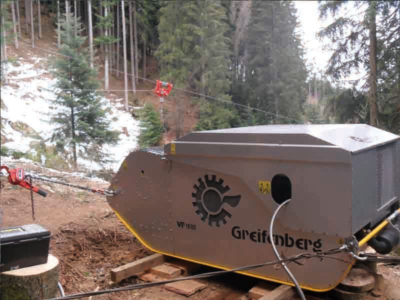 - Radio System - The radio controls adopted by Greifenberg are the result of years of field experience in terms of operating range and user ergonomics. They can be comfortably used with safety gloves and feature an extremely robust case capable of withstanding drops and heavy impacts. With a convenient shoulder strap, they can be operated with one hand, and thanks to the buttons marked with specific icons, operations during use are extremely simple. A powerful battery guarantees operation for an entire working day. Additionally, the standard supply also includes a spare battery and a charger. - The brain of the radio system is found in the key inserted into the remote, where codes and communication protocols are stored. From the remote control, it is possible to carry out all the operations normally performed from the machine's touch screen panel. Specifically, it allows turning the diesel engine on and off, increasing and decreasing the speed of the ropes, setting and updating the end line or loading point, making movements outside the set parameters thanks to the dedicated "by-pass" button, starting the automatic work cycle for the machine to operate autonomously, controlling traditional trolleys by opening and closing the blocks on the ropes, and also performing all the operations on motorised trolleys, controlling both the motor and the lifting and lowering speed. - Through the remote control, it is also possible to set the maximum lifting point of the trolley to prevent the hook from being raised too high, as well as the maximum unwinding of the rope, preventing the entire rope from being unwound from the trolley's drum. If the rope is shortened, the maximum lifting point can be reset according to the new rope length. The same remote control can also integrate the management of Fortronics electronic chokers with an accidental anti-opening system. - The Radio System includes a frequency repeater that is perfectly coded and integrated. The radio controls can operate with one or more repeaters, thus making the working distance virtually limitless and, importantly, capable of overcoming bumps, buildings, and obstacles of any kind, extending the operational range. The repeater is housed in a robust, compact casing, and inside it, a powerful rechargeable battery allows it to work for an entire working day. The repeater should be placed at the peaks of bumps or alongside structures so that it can establish a good connection with both the transmitter and receiver. The activation is very simple, performed with a single button press, and the distance can be reset with a click. - Greifenberg understands external working conditions, with temperatures ranging from below zero to scorching sun, snow, water, and humidity. The Radio System is not affected by the weather: it has an IP65 rating, selected components, and contacts treated with anti-corrosive materials. These are the guarantees of a product designed for tough work environments. Maximum reliability is ensured for precise, timely, and unquestionable commands. Transmitters, repeaters, and receivers are ready for non-stop work.