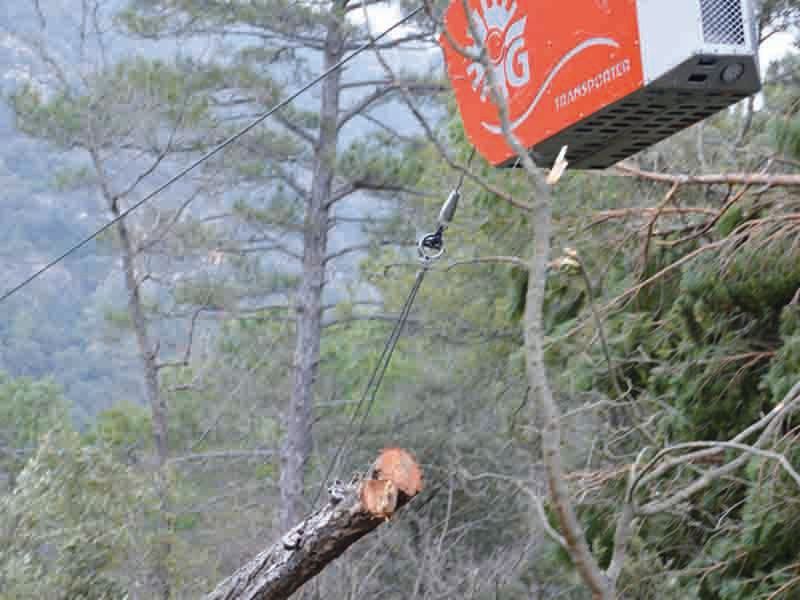 Accessori indispensabili per la costruzione di linee teleferiche, per il corretto tensionamento, stoccaggio, deviazione e sostegno delle funi. Choker ad apertura automatica per lo sgancio rapido del carico. Catene e cingoli per macchinari forestali speciali.
