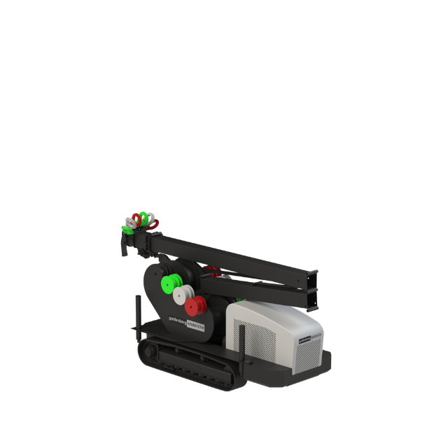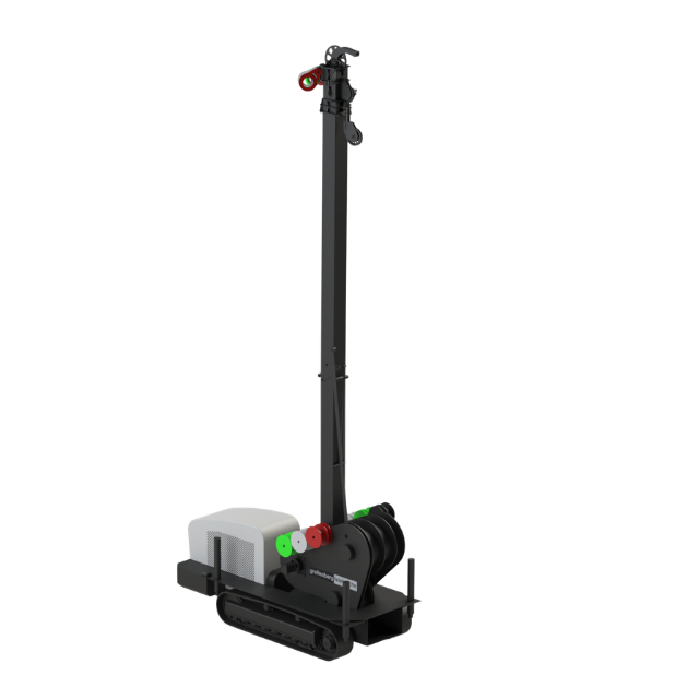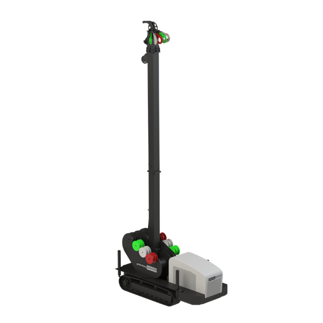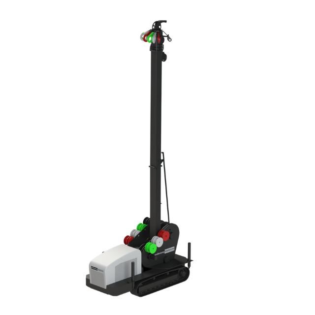 L'installazione della linea è ottimizzata da un radiocomando dedicato con display integrato. Questo dispositivo permette la movimentazione di tutti i tamburi, delle controventature, oltre alla gestione di servizi come il sollevamento torre ed i piedini stabilizzatori. Grazie al feedback sul display, hai sempre sotto controllo i parametri del motore e la diagnostica di bordo.